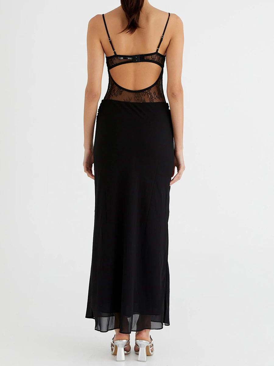 Summer Women’s Long Cami Dress for Party Eveing Club Sleeveless Open Back Lace Patchwork Bodycon Dresses